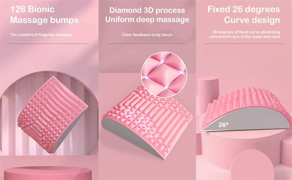 Back Stretcher Pillow Waist Massage Neck Lumbar Support Massager, Posture Corrector, Sciatica, Herniated Disc Pain Relief Relax
