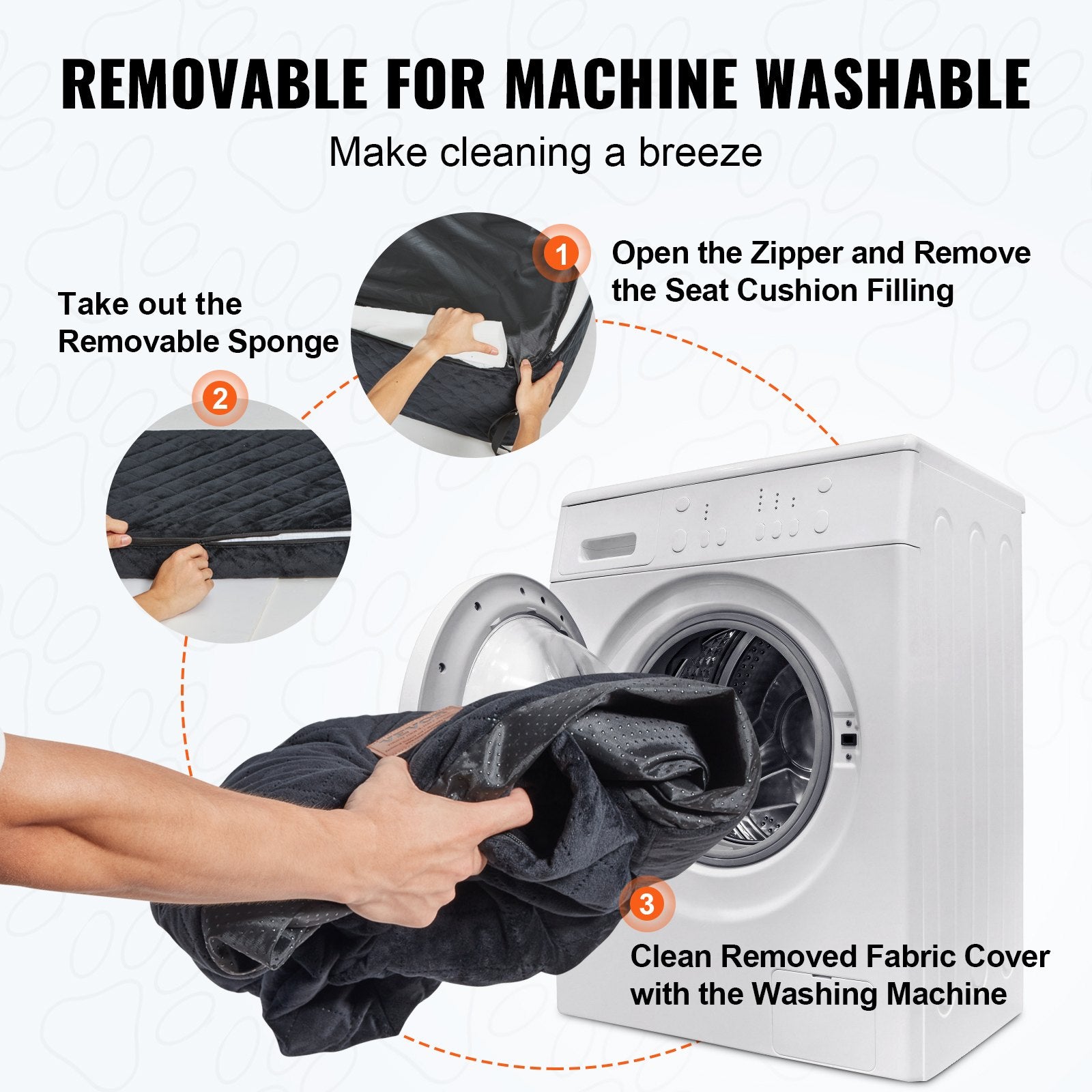 Core functional modules Security protection design: Double fixation: Equipped with adjustable car seat belts and pet exclusive safety straps, it can be firmly fixed in the back seat of the car to prevent pets from shifting while riding. Stable structure: Sponge filling enhances seat support, avoids seat shaking during driving, and improves pet riding safety. Comfortable riding experience Soft Material: Made of soft fabric with sponge filling, it has a comfortable touch and is durable and wear-resistant. Elevated design: The seat can elevate the sitting posture of pets, helping them alleviate travel anxiety and improve ride comfort. Convenient to use features Easy to install: One person can complete the installation, with simple operation and no need for complex tools. Easy to clean: The outer cover is detachable, making it easy to clean and reuse, keeping the seat clean. Convenient storage: There are pockets on the side that can store pet supplies, enhancing the convenience of use.